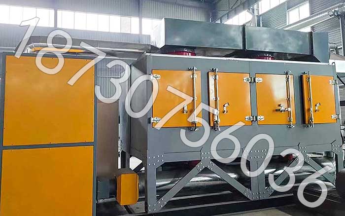 催化燃燒裝置:首先通過除塵阻火系統(tǒng).然后進(jìn)入換熱器,再送到加熱室,使氣體達(dá)到燃燒反應(yīng)溫度,再通過催化床的作用,使有機廢氣分解成二氧化碳和 水,再進(jìn)入換熱器與低溫氣體進(jìn)行熱交換,使進(jìn)入的氣體溫度升高達(dá)到反應(yīng)溫度.如達(dá)不到反應(yīng)溫度,加熱系統(tǒng)科通過自控系統(tǒng)實現(xiàn)補償加熱.利用催化劑做中間體,使有機氣體在較低的溫度下,變成無害的水和二氧化碳?xì)怏w.①操作方便,設(shè)備工作時,實現(xiàn)自動控制,安全可靠.②設(shè)備啟動,僅需15~30分鐘升溫至起燃溫度,能耗低.③采用當(dāng)今的貴金屬鈀鉑浸漬的蜂窩狀載體催化劑,比表面積大,阻力小,凈化率高.④余熱可返回烘道,降低原烘道中消耗功率;也可作其它方面的熱源.⑤使用壽命長,催化劑一般兩年更換.